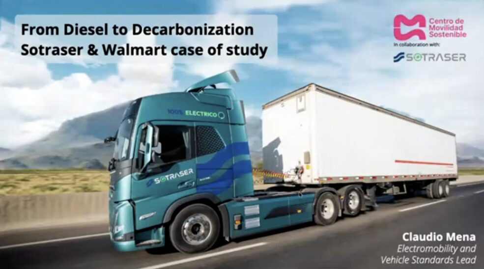 Together, Walmart and Sotraser, a major Chilean logistics company, are charging up change in Chile—and quickly. Within less than a year, they’ve partnered to deploy fifty electric trucks, twenty charging stations, and 1,200 kW installed renewable power. The trucks, which travel an average of 200+ kilometers per day, service Walmart’s more than 400 retail supermarkets across the country. Electric trucks that charge on renewable energy and serve one of the largest retailers in the world—that’s what changing transportation for good looks like. For more information, watch this presentation by Centro de Movilidad Sostenible’s Electromobility and Vehicle Standards Lead, Claudio Mena.